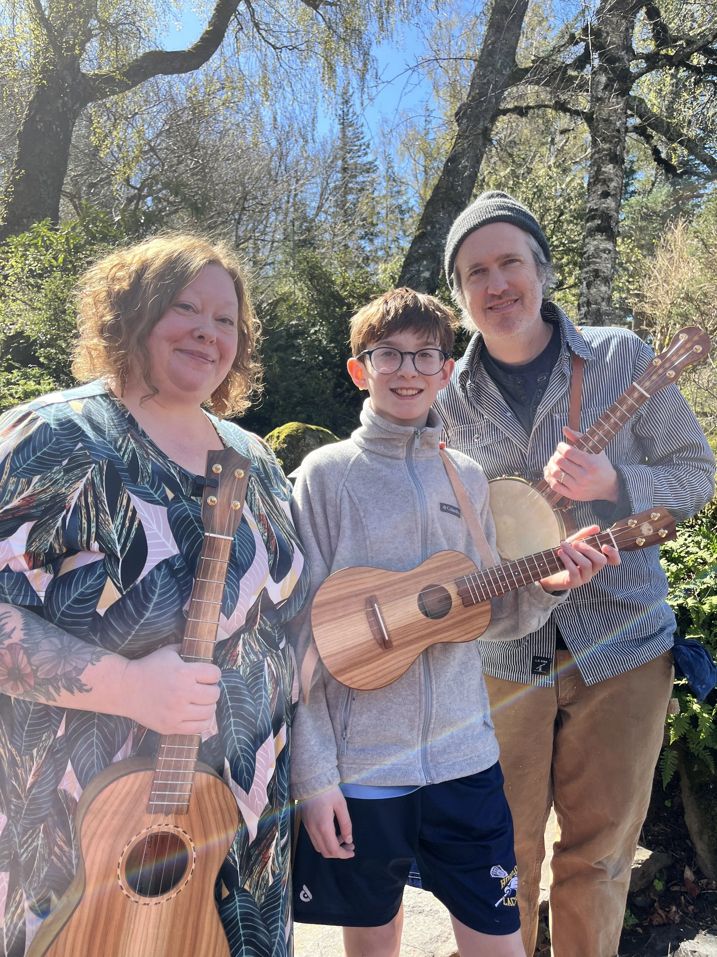 Aaron founded Beansprout in 2007 in collaboration with Heidi and Rob Litke in Colorado. Together, they built over 100 instruments before Aaron moved to Oregon to work with Gordon and Char Mayer at Mya-Moe. During his tenure at Mya-Moe, Aaron contributed to the creation of more than 2,000 instruments, refining his craftsmanship and exploring new designs. In 2018, Aaron and Nicole re-launched Beansprout, introducing a unique line of ukuleles, banjos, and tenor guitars, and have since produced over 700 instruments. In 2023, Aaron received the Mortise & Tenon Magazine woodworking research grant, which he used to study the first ukuleles made in Hawaii. Beyond their work with Beansprout, Aaron and Nicole perform and teach worldwide and publish books under the names The Quiet American and Lazarus Books.