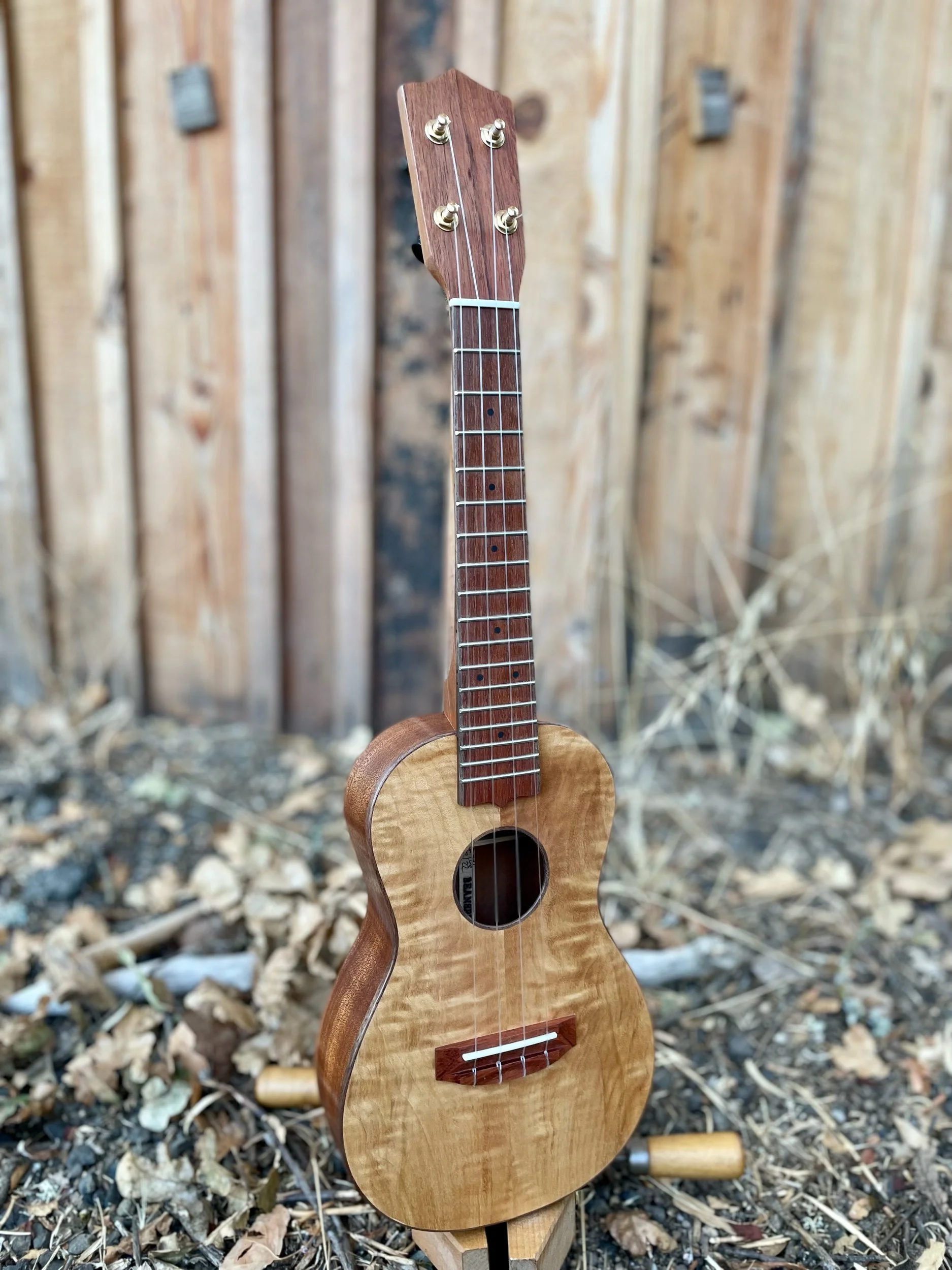 This beautiful stock instrument went to music camp with me and did not come home. It is made entirely of salvaged wood. The Port Orford Cedar top comes from cleaning out my flute making neighbors shop, the Jatoba fretboard/head plate/bridge comes from the Carpenter Ant Stash, the African Mahogany comes from an estate sale in Colorado and the Spanish cedar neck is from a retired banjo builder.